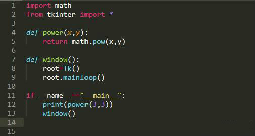 - 这里编写的python测试代码如下,很简单,2个函数,一个计算次方,一个创建窗口: